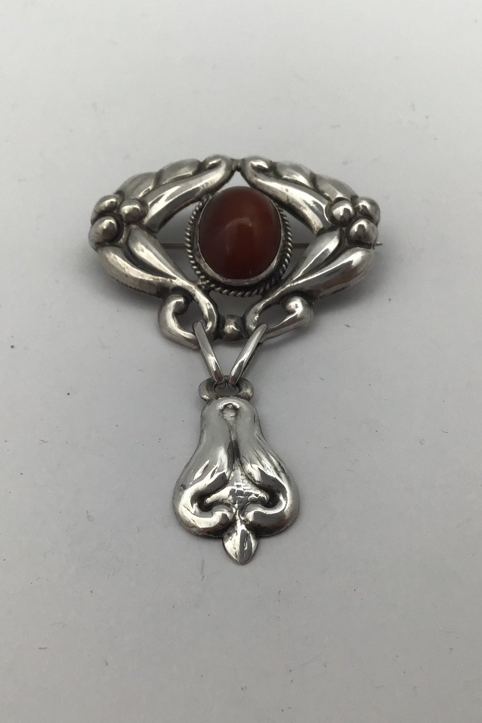 Danish Silver Art Nouveau Brooch with Amber Measures 7,2 cm x 4.5 cm (2.83 inch x 1.77 inch) Weight 8.4 gr (0.30 oz)