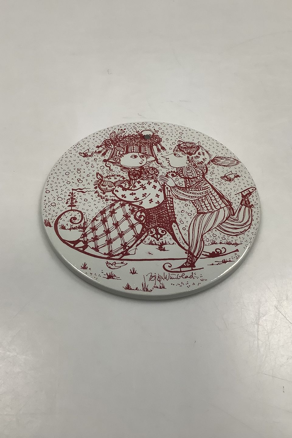 Red monthly plate in faience for January - CONTACT. Designed by Bjørn Wiinblad for Nymølle. In good condition. The factory mark on the back. Dimensions: 15 cm (5.90 inches)