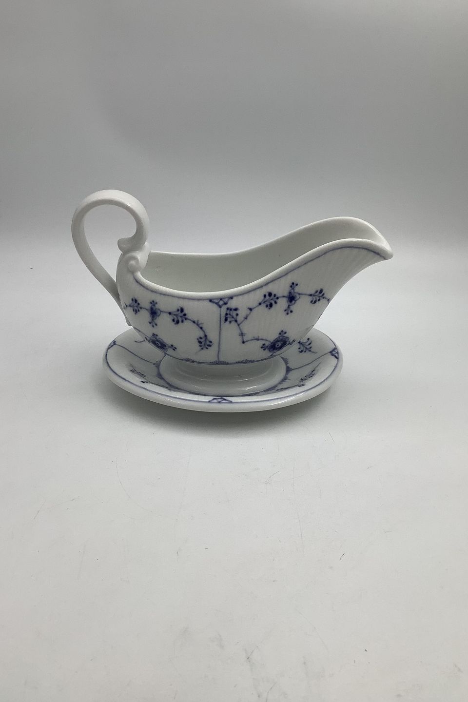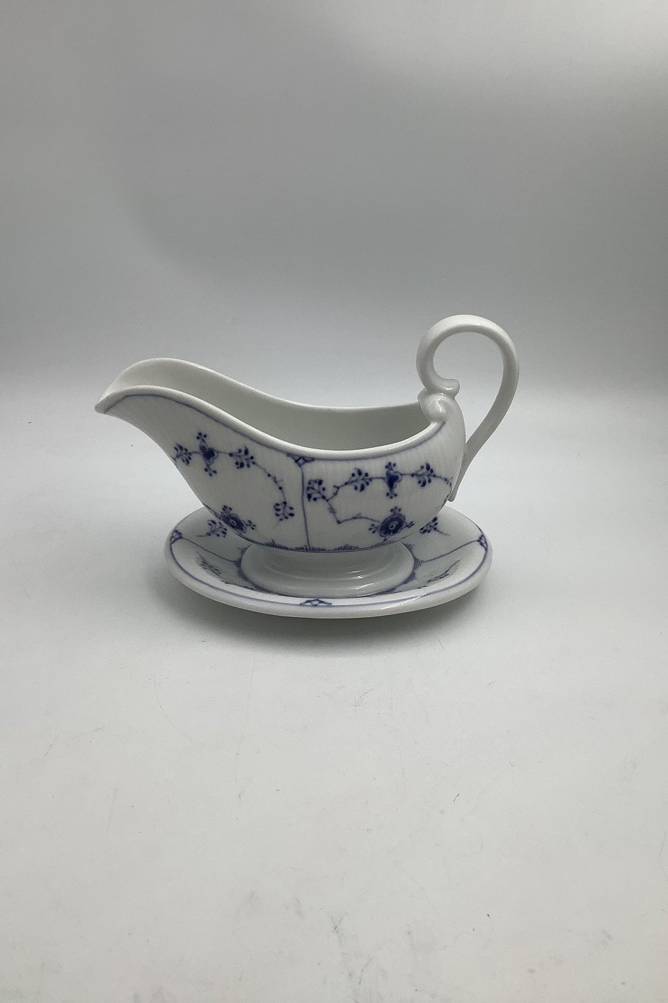 Royal Copenhagen Blue Fluted Plain Saucebowl with handle and saucer No 200. Measures 20 cm x 14 cm / 7 7/8 in. x 5 33/64 in.