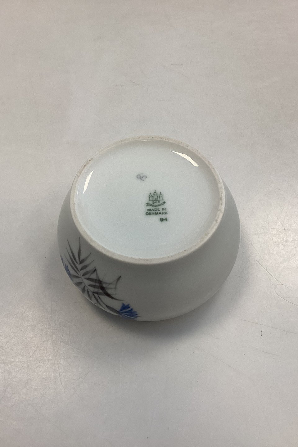 Bing og Grøndahl Hvid Demeter / Kornblomst Sukkerskål u. låg No. 94. Måler 6,5 cm x 11,5 cm / 2,55 in. x 4,52 in.