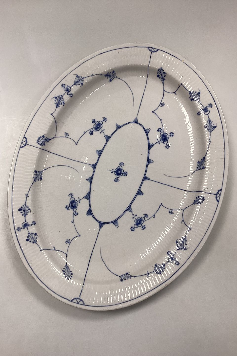 Royal Copenhagen Blue Fluted Plain Antique Dish. Placement marks and black firing specks in the glaze (see photo).