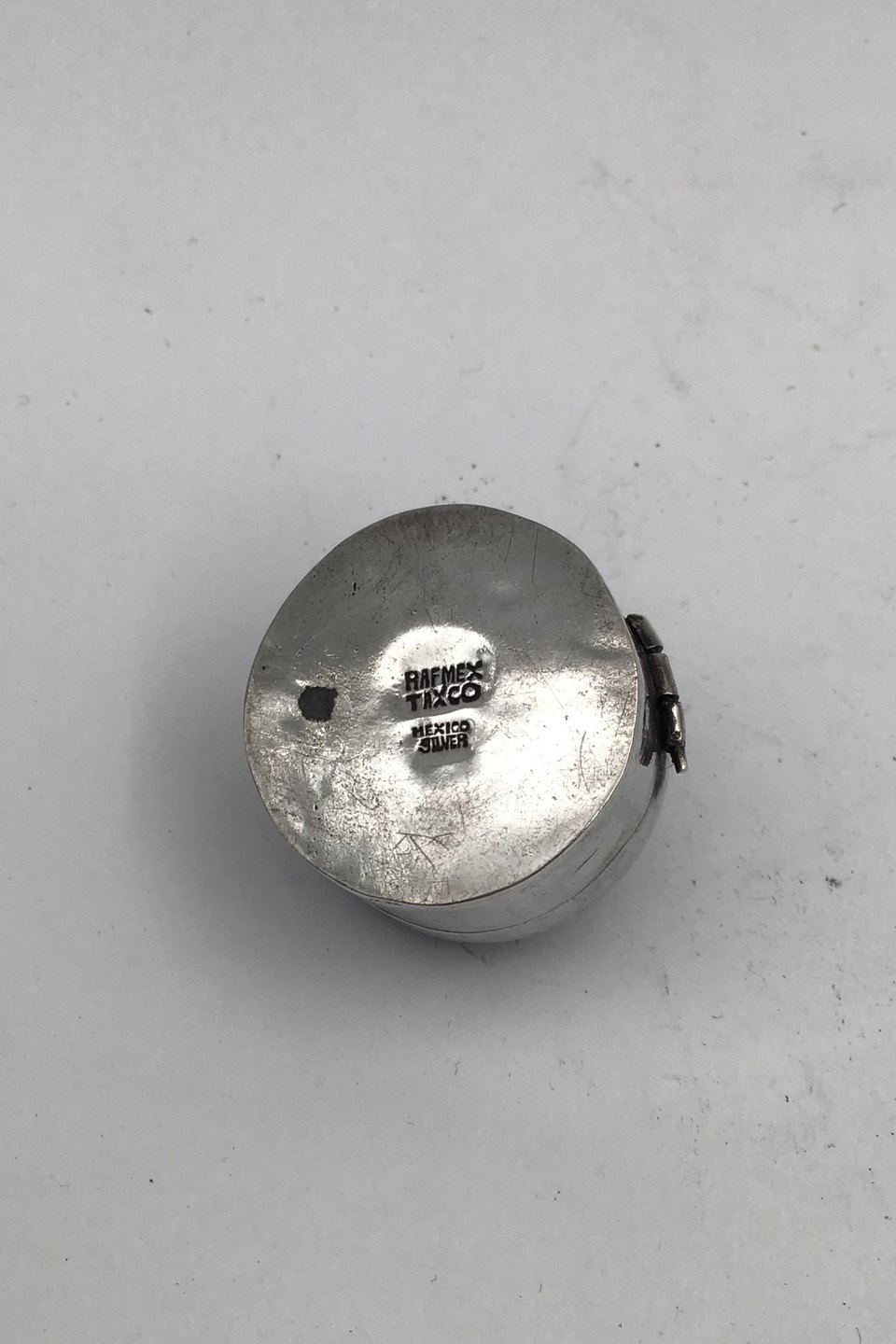 Rafmex Taxco Mexico Silver Pill Box (Amethyst) Measures Diam 2.5 cm (0.98 inch) Weight 20.7 gr (0.73 inch)