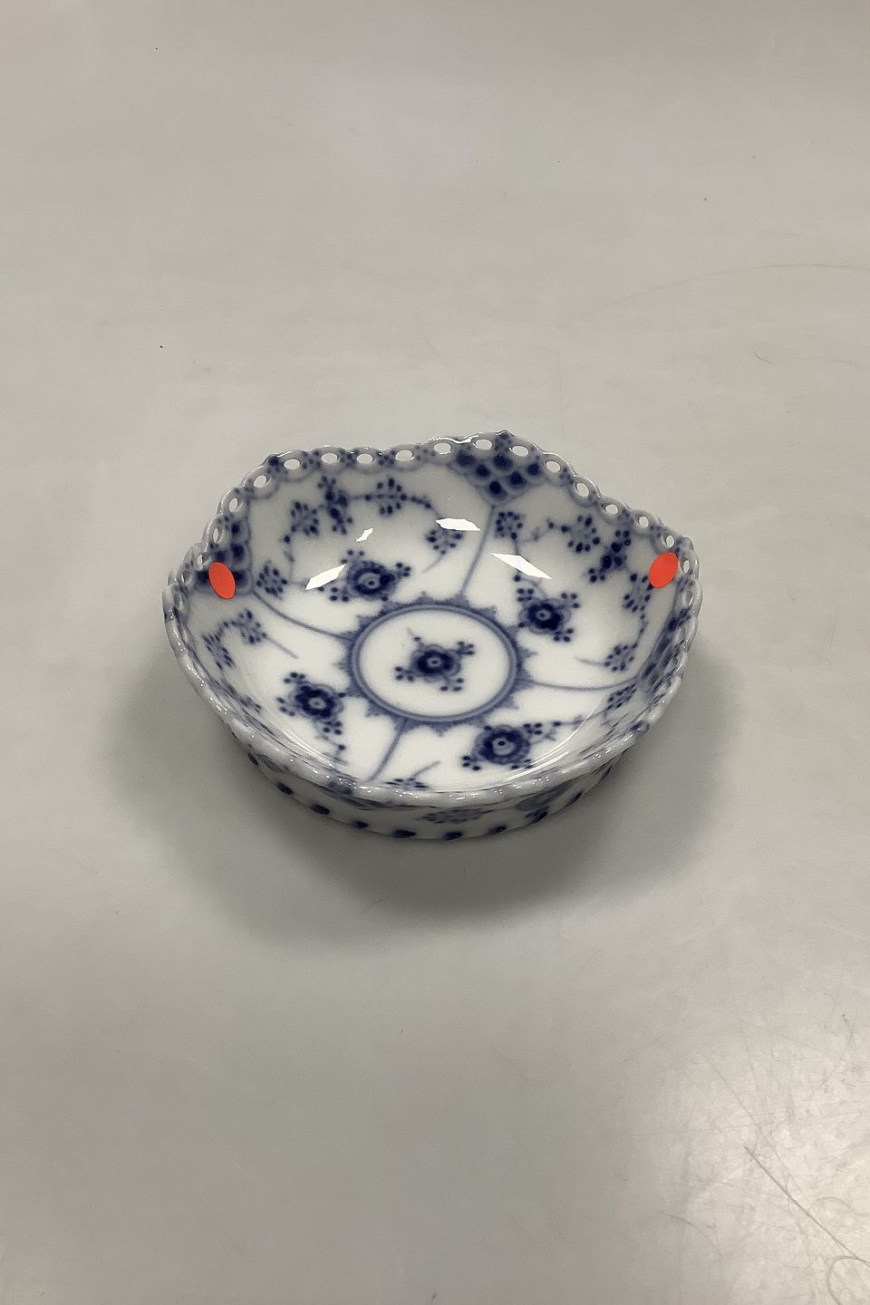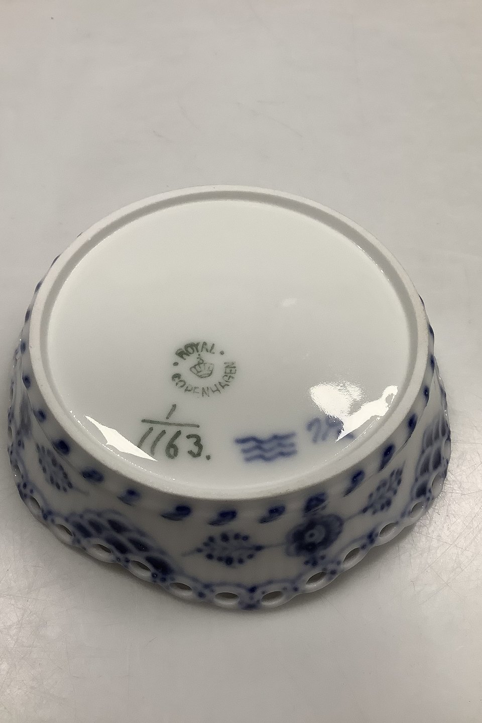 Royal Copenhagen Blue Fluted Full Lace Small Dish No 1163. Measures 11 cm / 4 21/64 in. Rare. Chips on edge, look at the red indicator marks