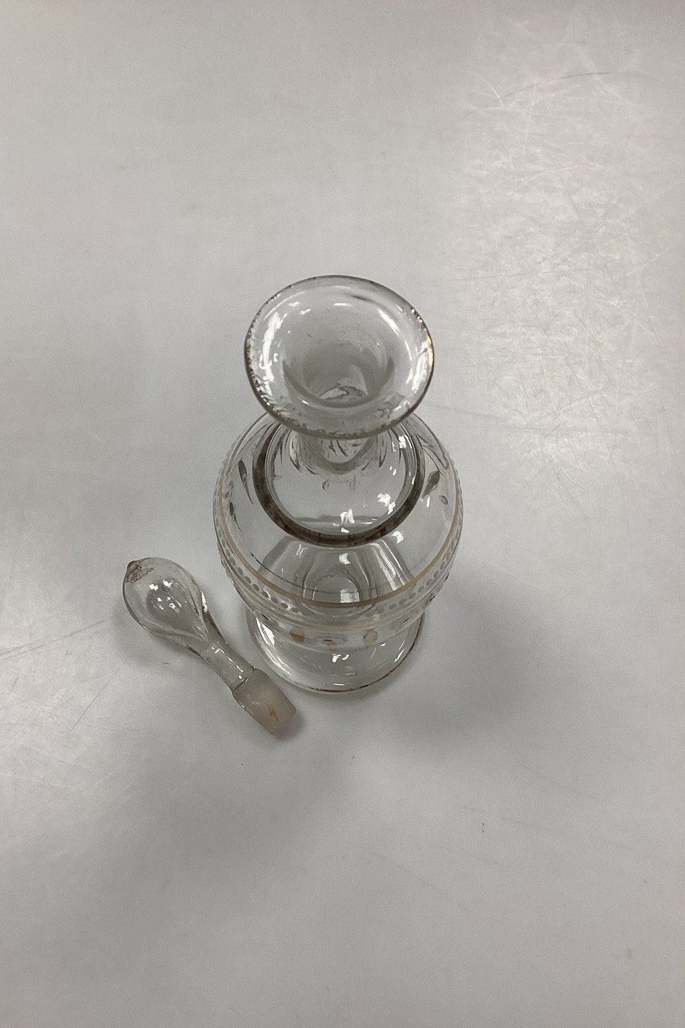 Glass Carafe with decoration in gold, white and red. Measures approx. 25.5 cm / 10.03 in.