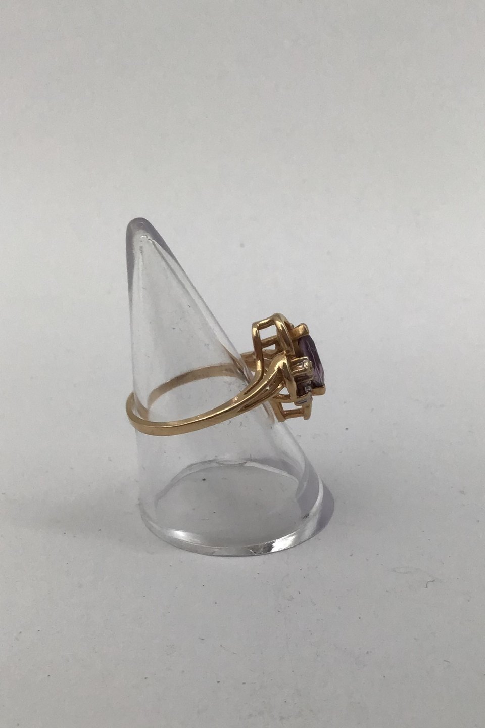 14K Gold Ring with Amethyst and Diamonds Measures Ring Size 52 (US 6) Weight 2.8 gr. (0.10 oz)