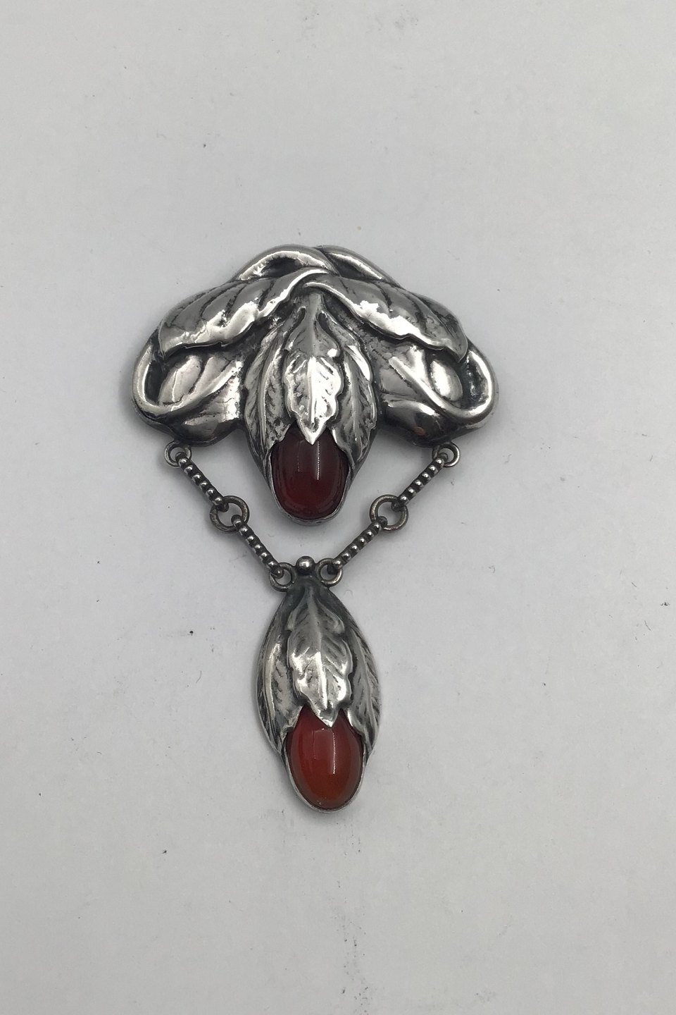 Bernhard Hertz 826 Sølv Art Nouveau Broche med Rav Måler 8.2 cm x 5.5 cm (3.22 inch x 2.16 inch) Vægt 17.7 gr. (0.62 oz)