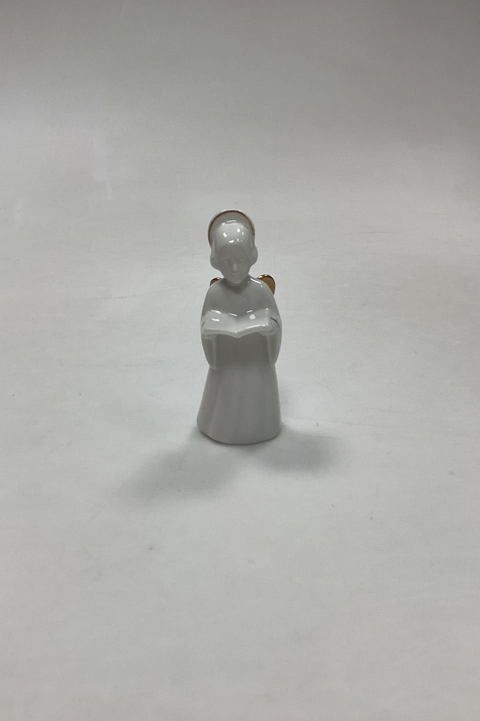 Bing og Grøndahl Figur Heavenly Music Engel - Sangbog No. 3. Juleornament i blanc de chine porcelæn med guld og snor til ophæng. Måler 9,5 cm / 3,74 in.