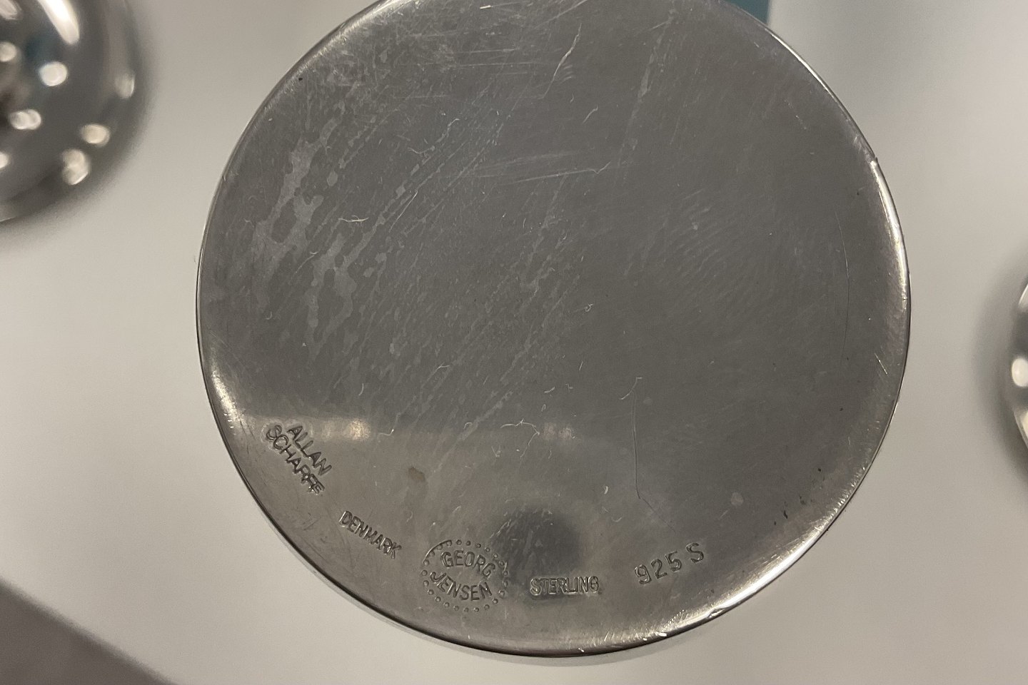 Georg Jensen / Holmegaard Sterling Silver and Glass 3-armed Candelabra by Allan Scharff