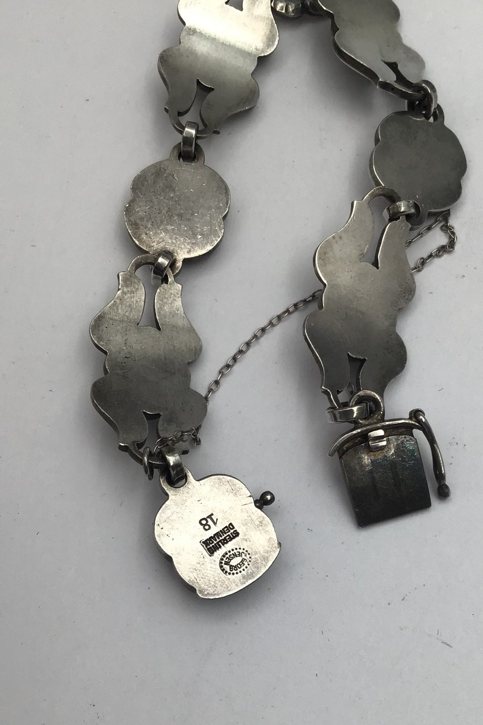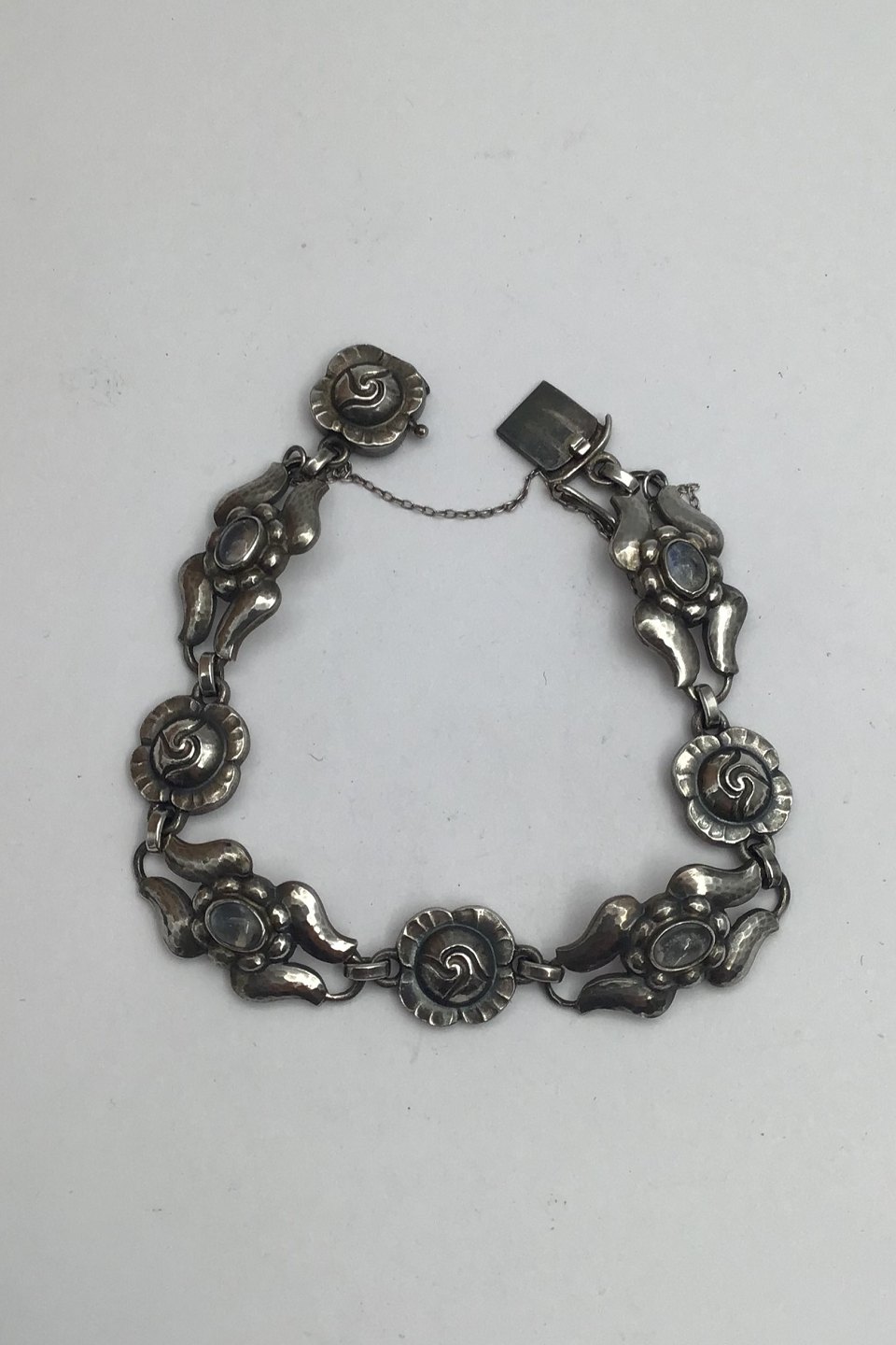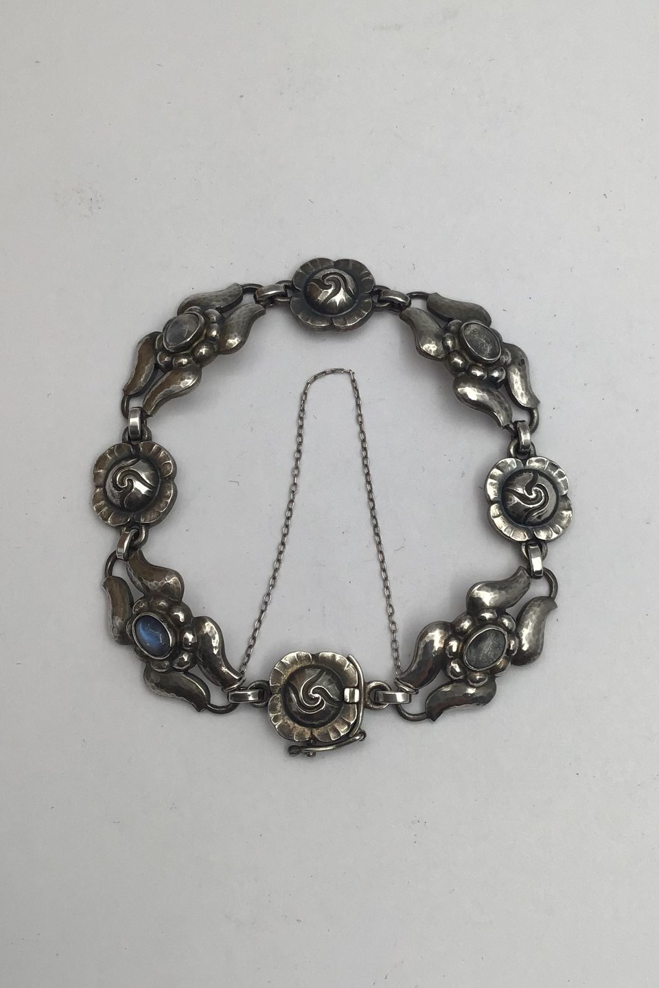 Georg Jensen Sterling Sølv Armlænke No. 18 Månesten Måler 19 cm (7.48 inch) Vægt 22.5 gr (0.79 oz) (Sikkerhedskæde)