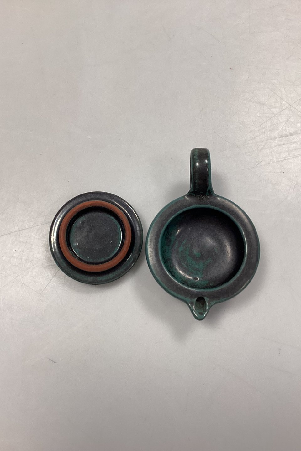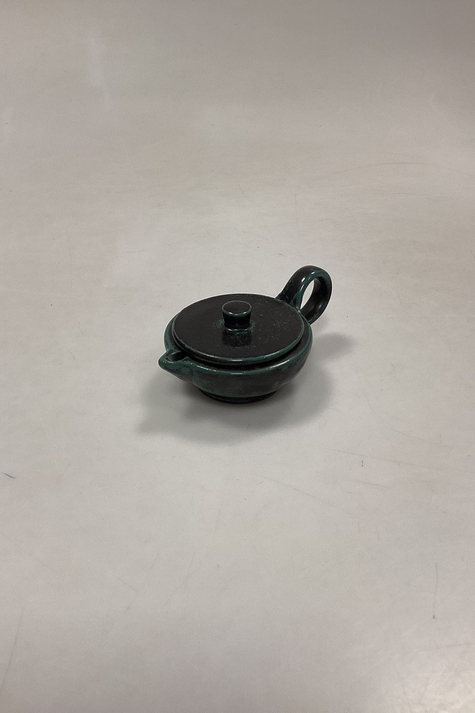 Lille olielampe i grøn/sort keramik. Designet af Vibeke Utke Ramsing.