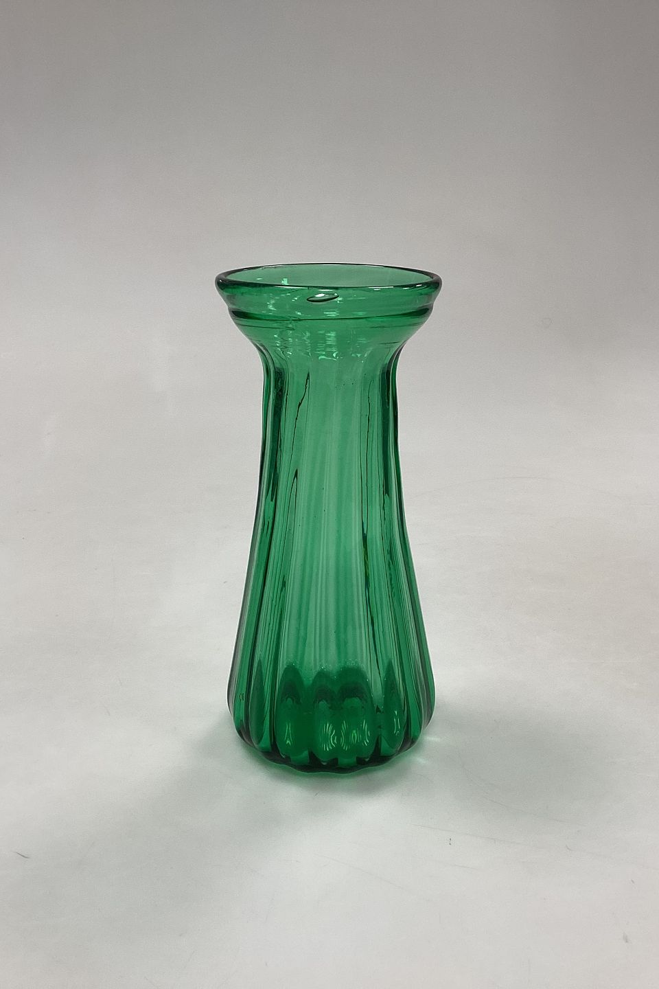 Bottle green Flower Bulb Vase Holmegaard / Kastrup / Fyens Glassworks. Striped optics. Suitable for hyacinths, tulips etc.Small air bubble at the top.