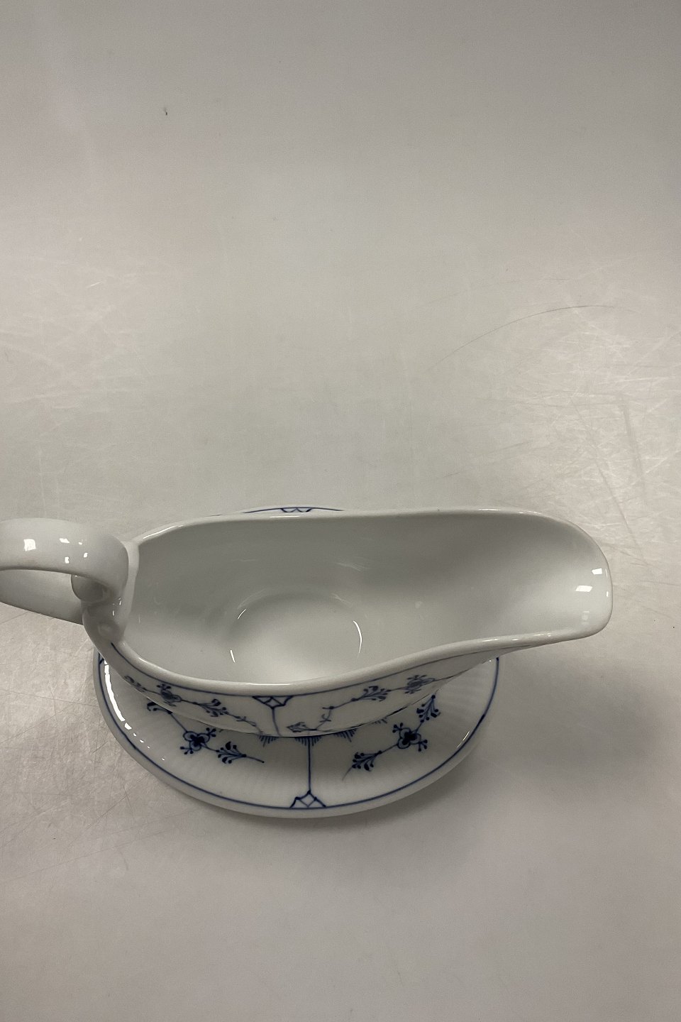 Royal Copenhagen Musselmalet Riflet Saucekande med Underskål No 200. Måler 20 cm x 14 cm ( 7 7/8 in. x 5 33/64 in. )