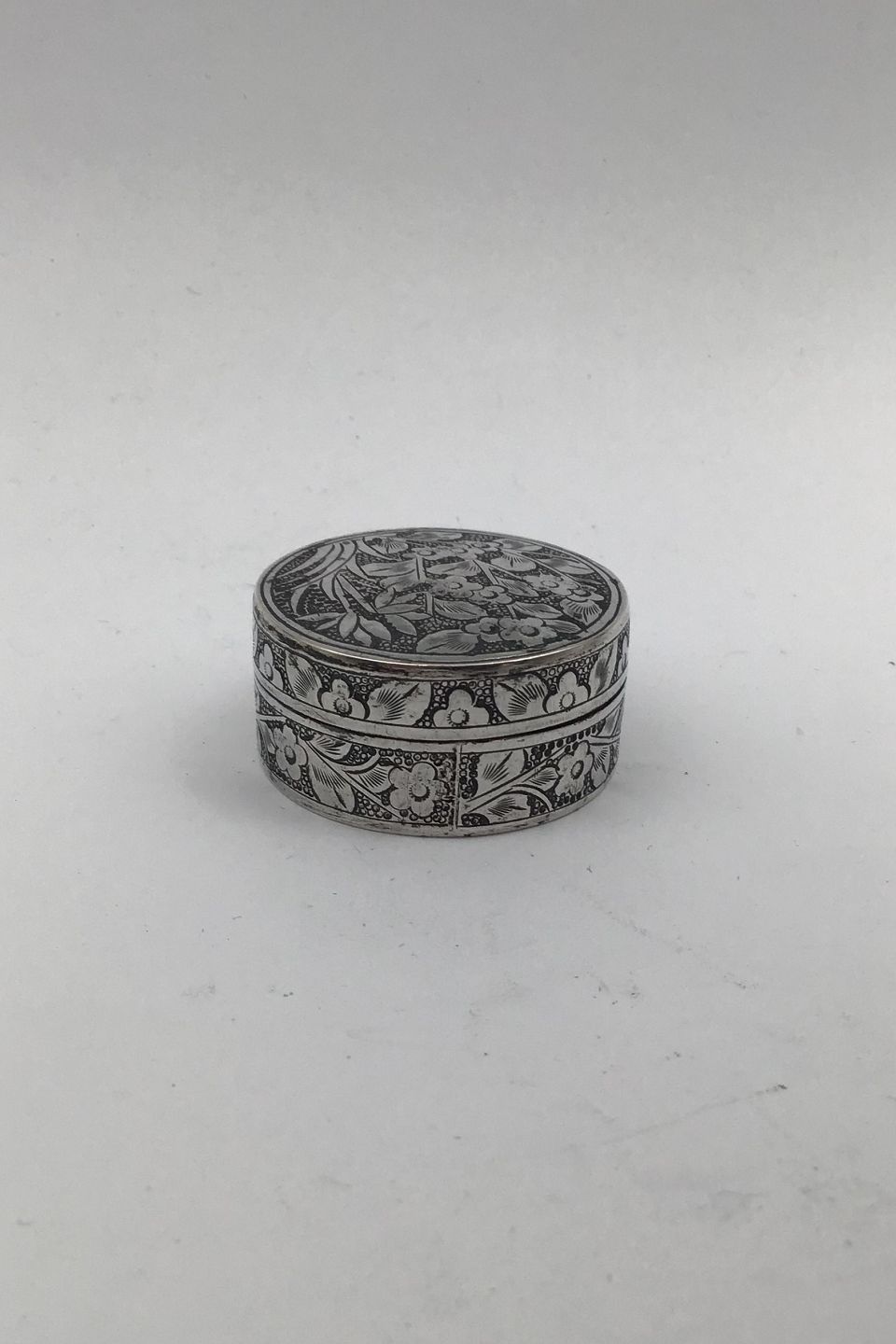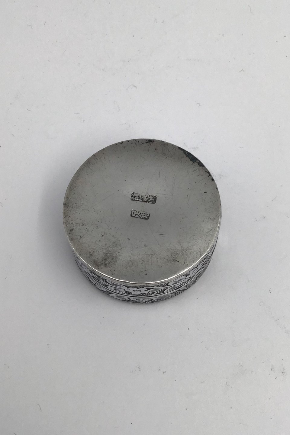 Kinesisk ? Sølv Pilleæske Måler Diam 3.7 cm (1.45 inch) H 1.9 cm (0.74 inch) Vægt 19.77 gr (0.70 oz)
