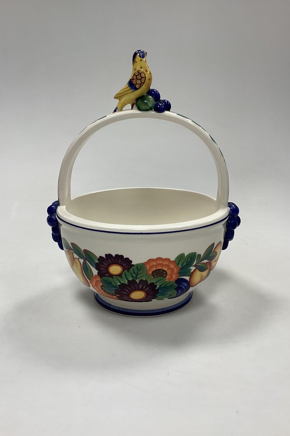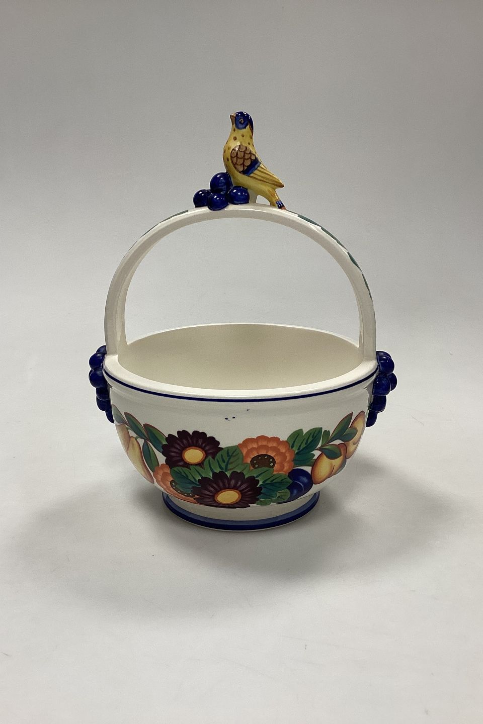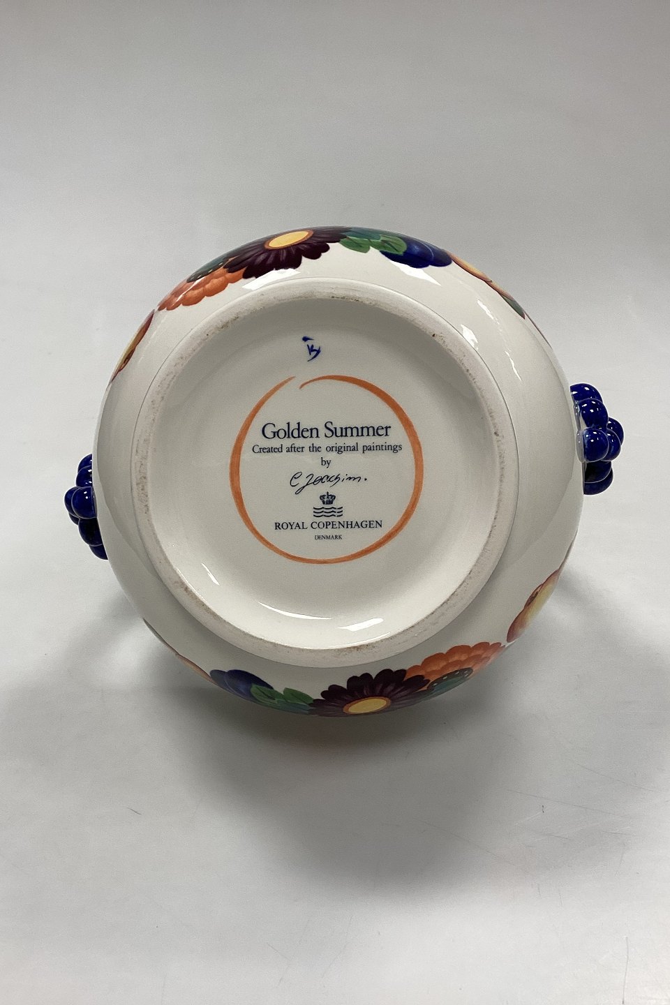Royal Copenhagen Golden Summer Bowl with Handle. Ideal for flowers, fruit or plants. 3rd Quality. Small glaze flaw, see photo.