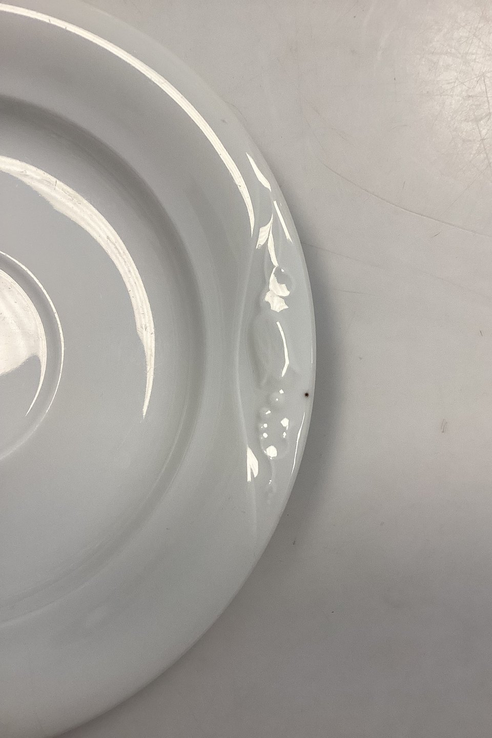 Royal Copenhagen White Magnolia Glazed Teacup and Saucer No. 84/85. Measurements - Cup: 6 cm x 9.5 cm / 2.36 in. x 3.74 in. Saucer: 16.5 cm / 6.49 in. 3rd Quality
