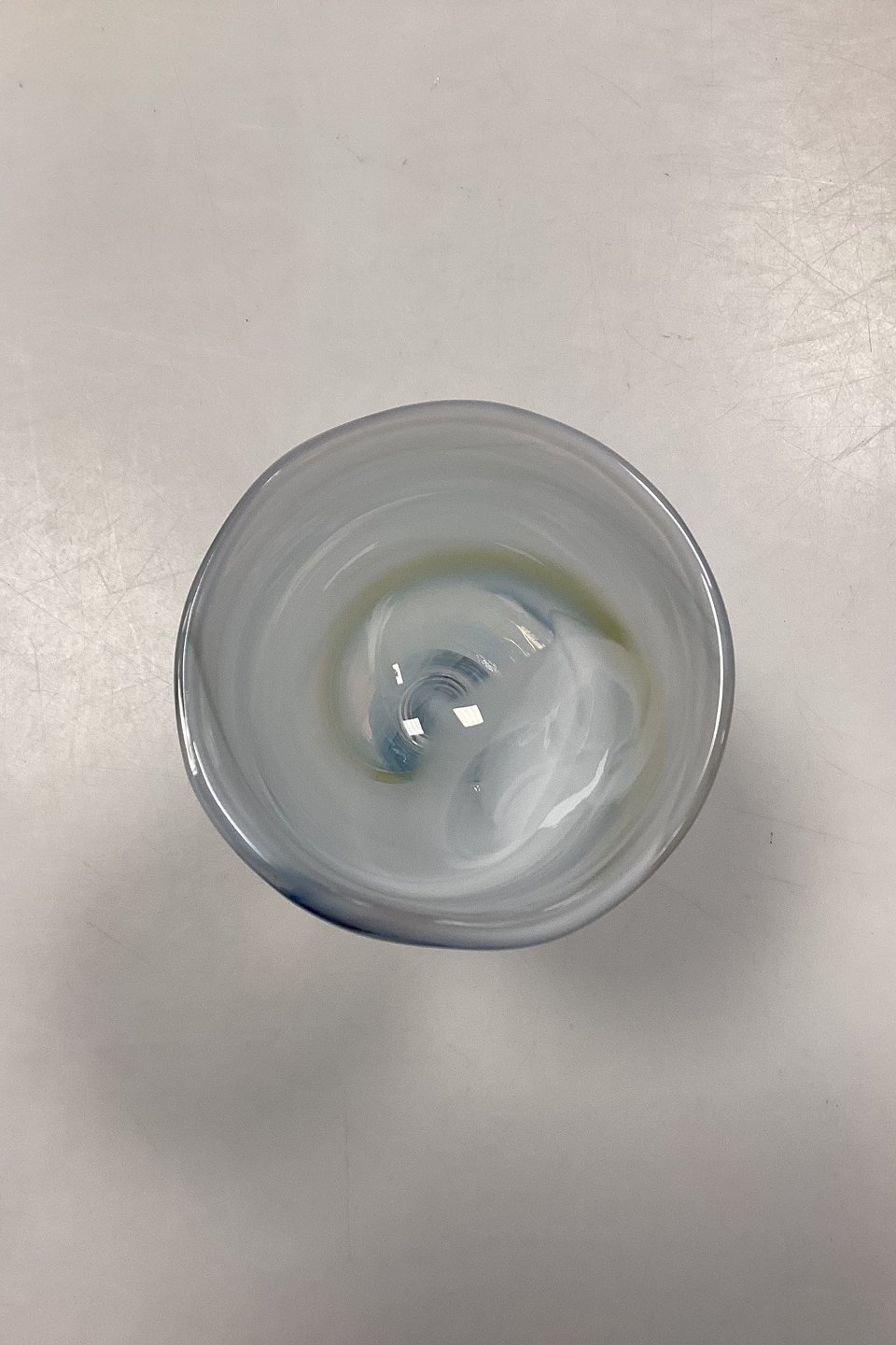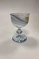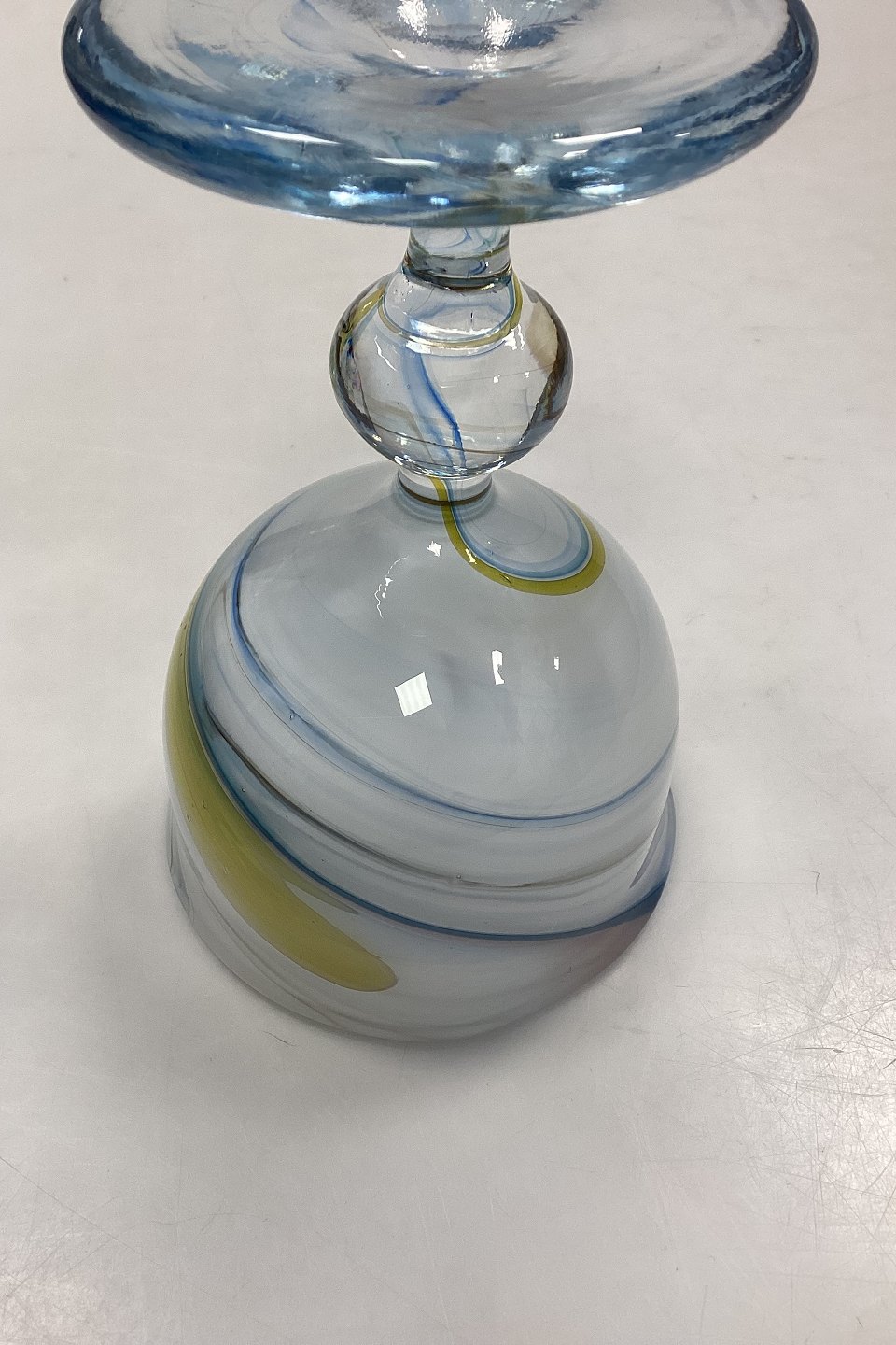Holmegaard Cascade Wine Glass. Designed by Per Lütken. The glass is opal white at the top, with multi-colored yellow and blue tones. Signed HG4 PL at the bottom.