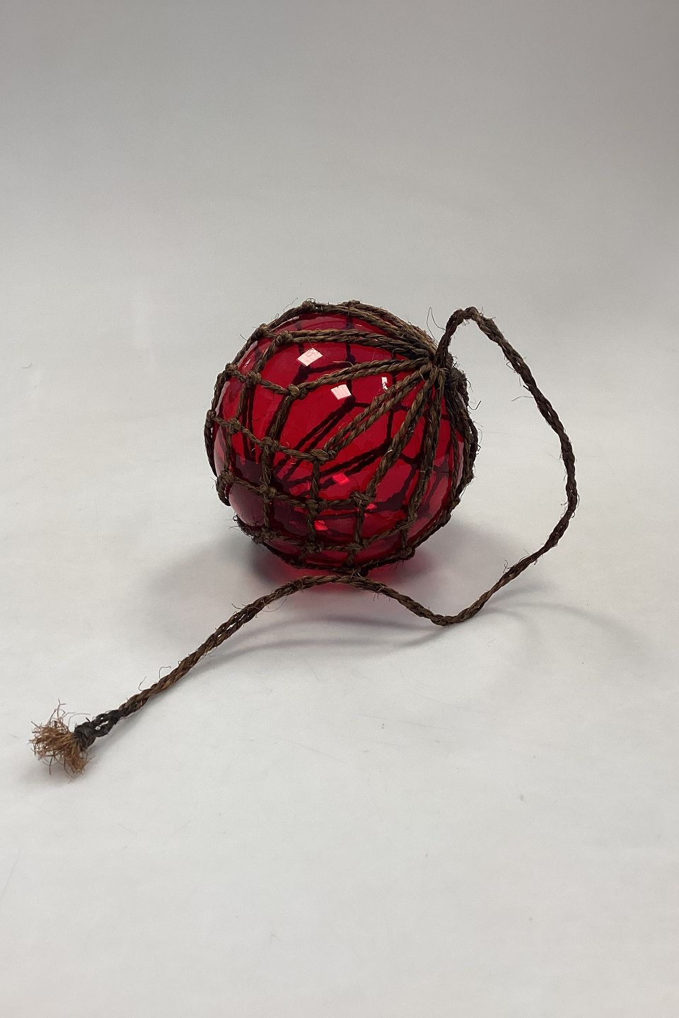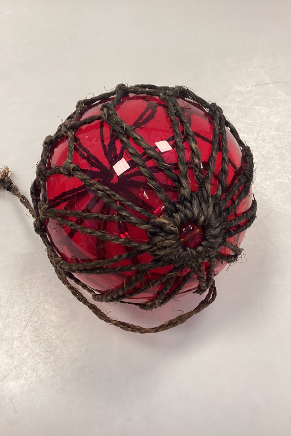 Holmegaard / Kastrup / Fyens Glass Works Decorative Ball in net. Also called fish balls or glass floats. Designed by Michael Bang in 1967. Color: Ruby red with brown net.