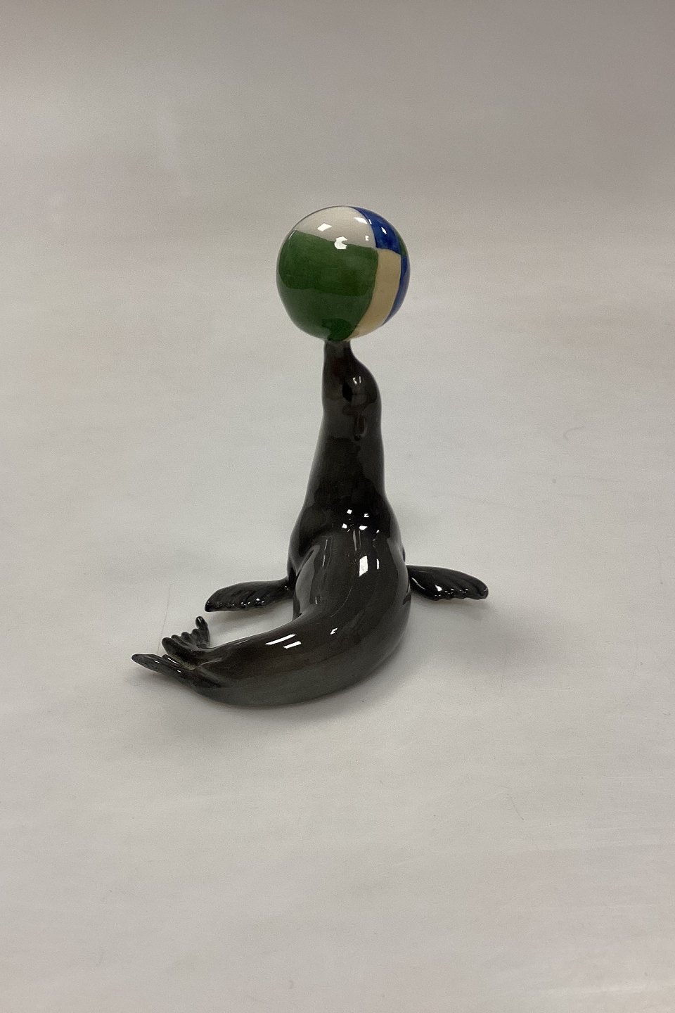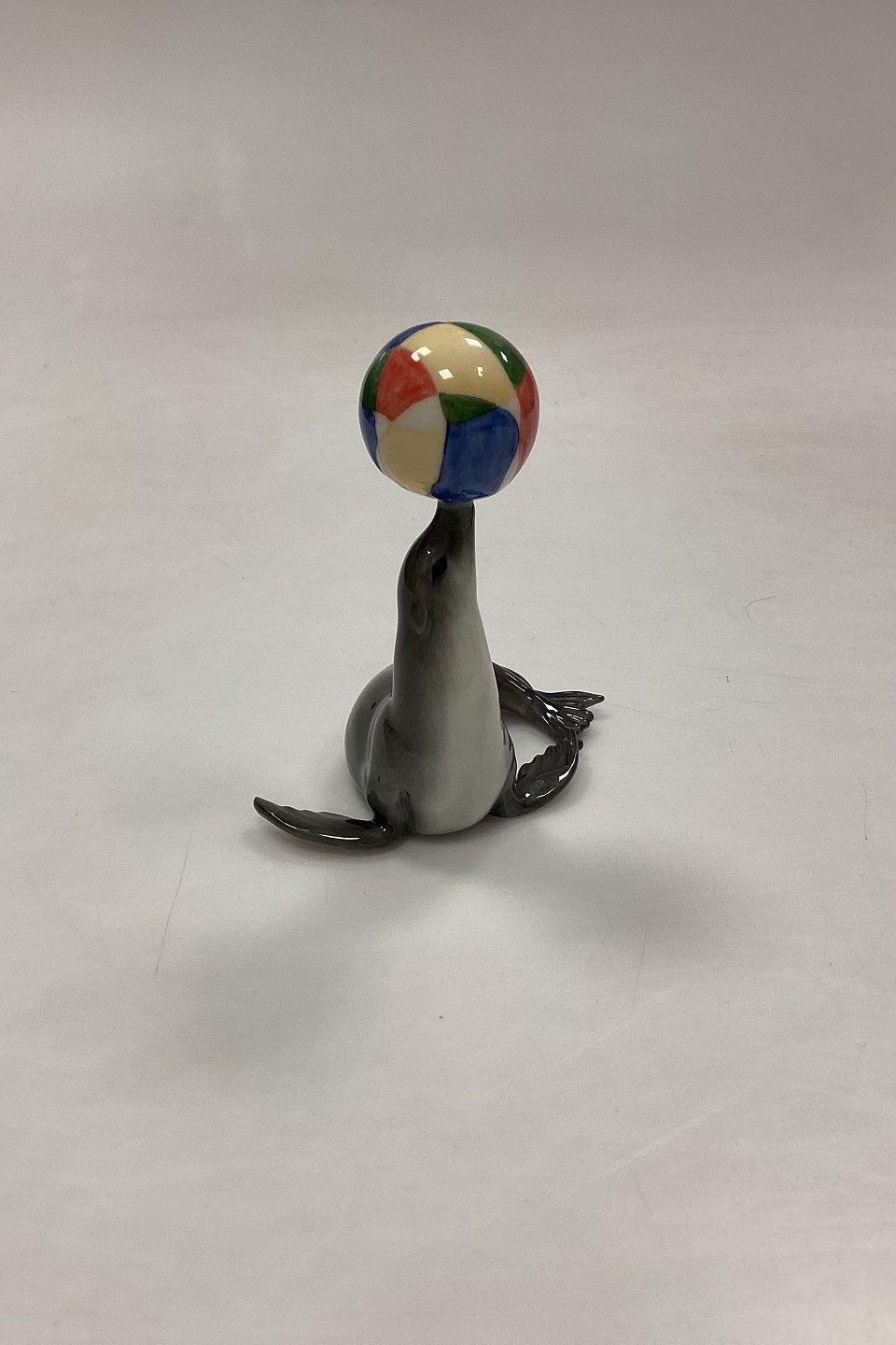 Royal Copenhagen Figur - Søløve med Bold No. 202. Figur fra Mini Cirkus Kollektionen. Designet af Svend Vestergaard fra 2015-2019.