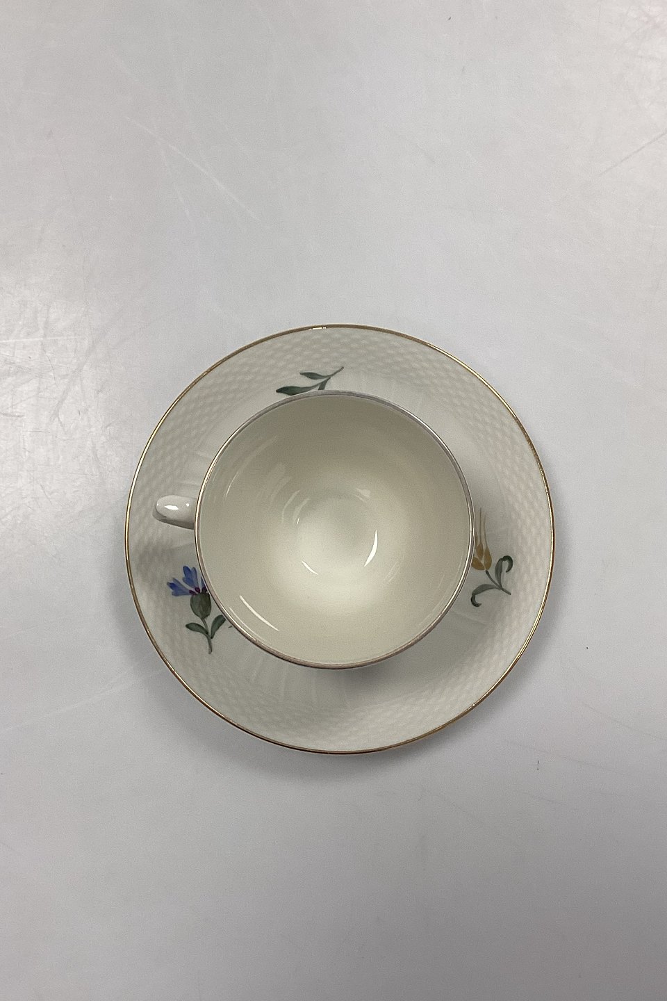 Cremefarvet stel med Blå kornblomstmotiver og Guldkant