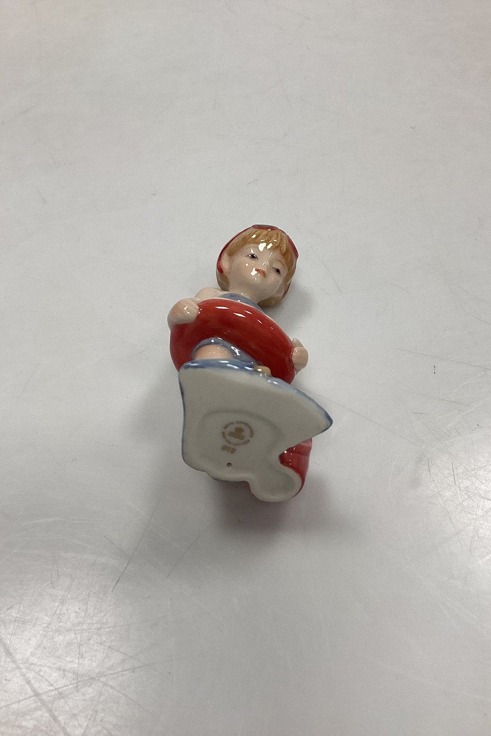 Royal Copenhagen Minibørn Figur - Christina No. 012. Pige med badering, spand og svømmefødder. Designet af Sven Vestergaard.