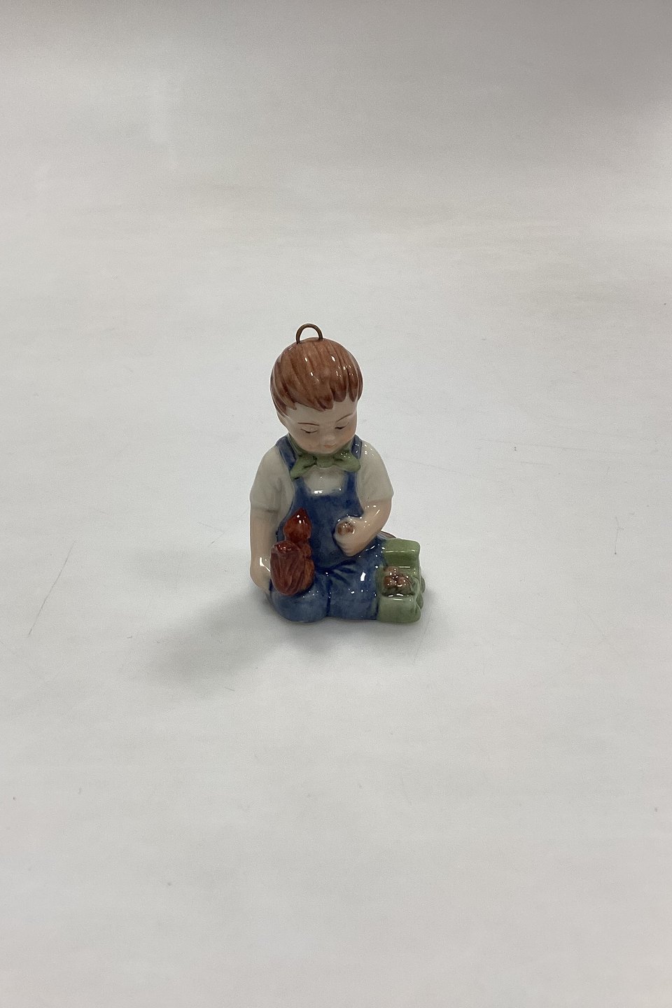 Bing og Grøndahl Collections 2001 Juleornament - Christian No. 743. Designet af Sven Vestergaard. Dreng med tog og egern. Figur til ophæng.