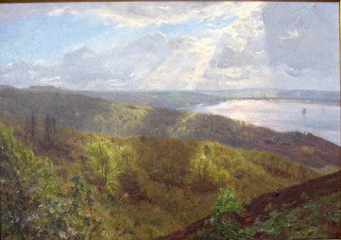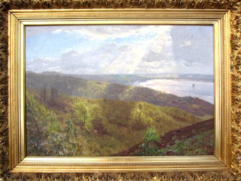 Vejle seen from Munkebjerg" Beautiful impressionistic painting with the right light and nice frame.