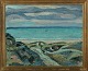 "Kystparti med fiskekutter" Olie maleri på lærred.