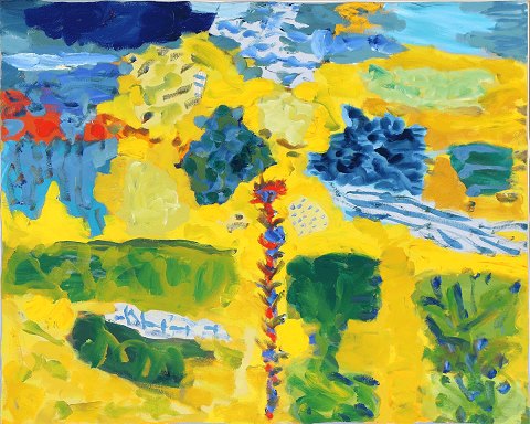 "Composition" Oil painting in silver frame.
