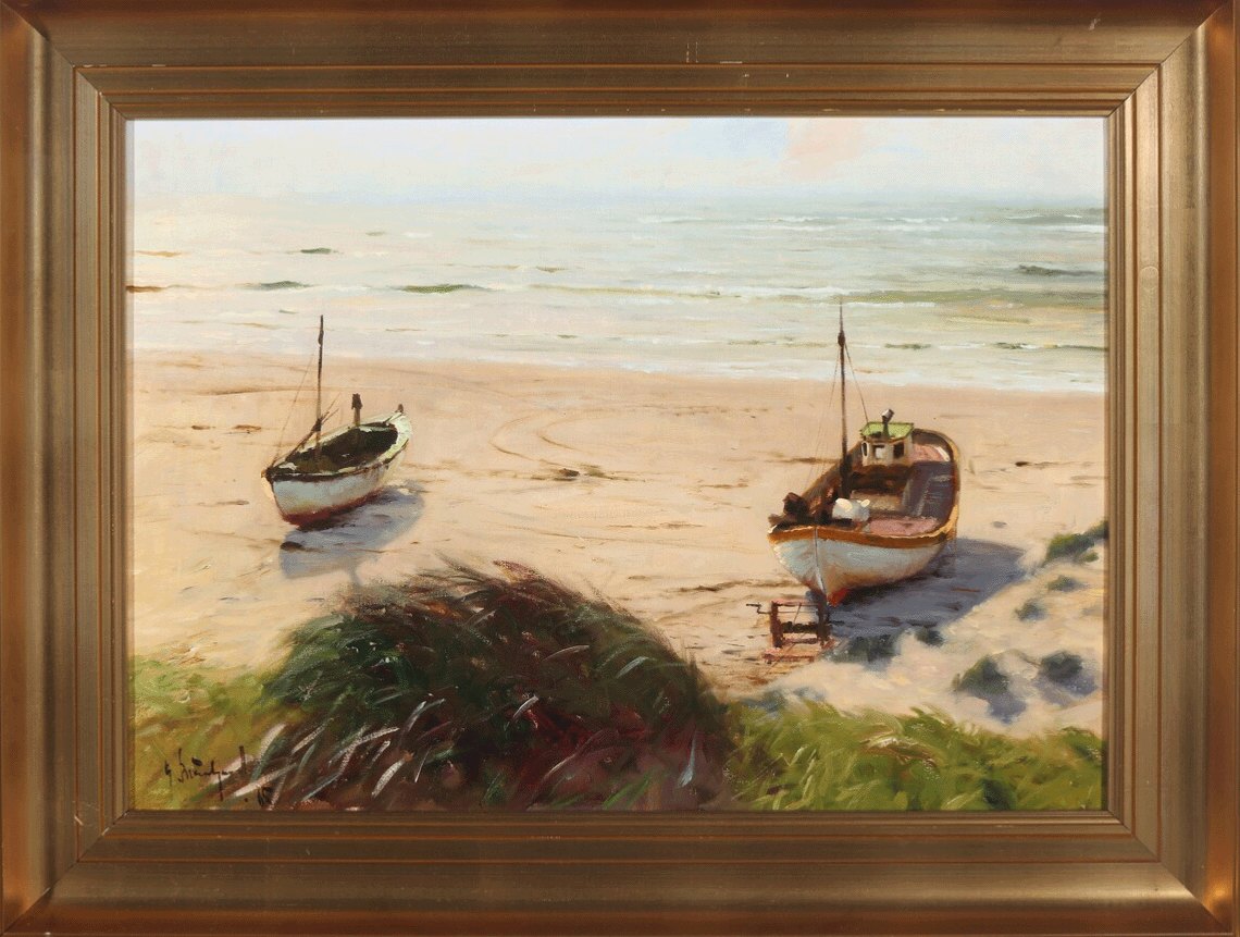 "Boat on the beach at Løkken" Oil painting on canvas.