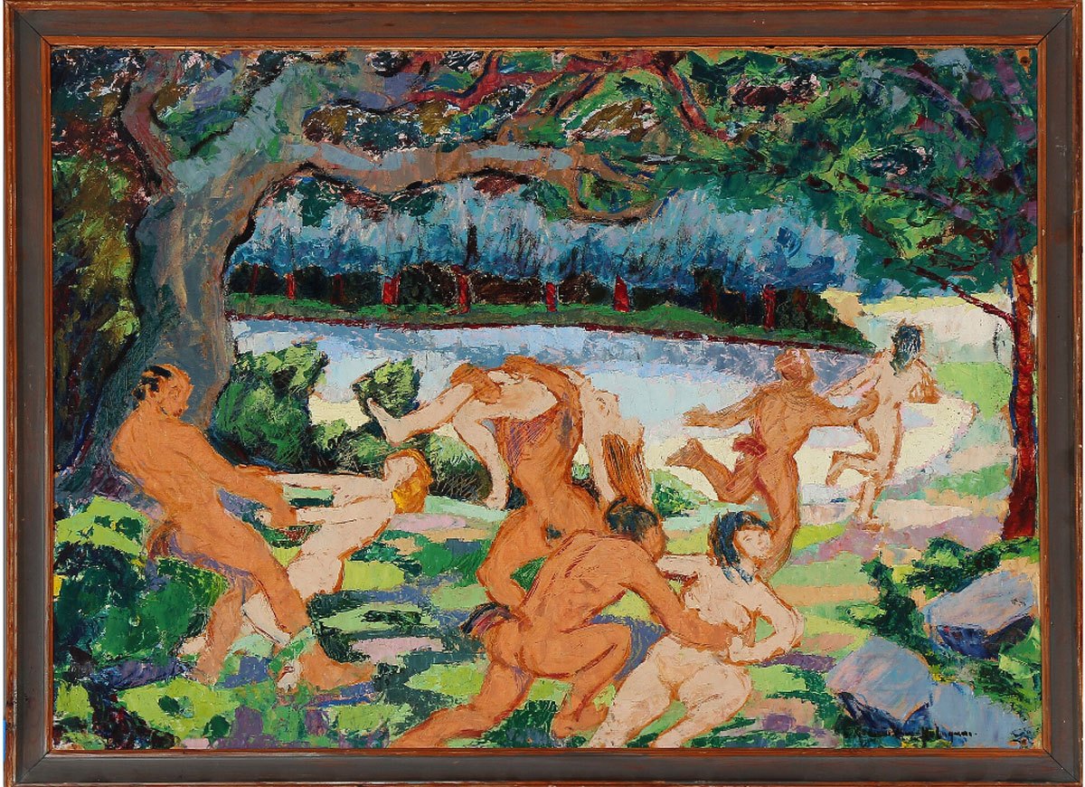 "Mytologisk scene" Olie maleri på lærred.