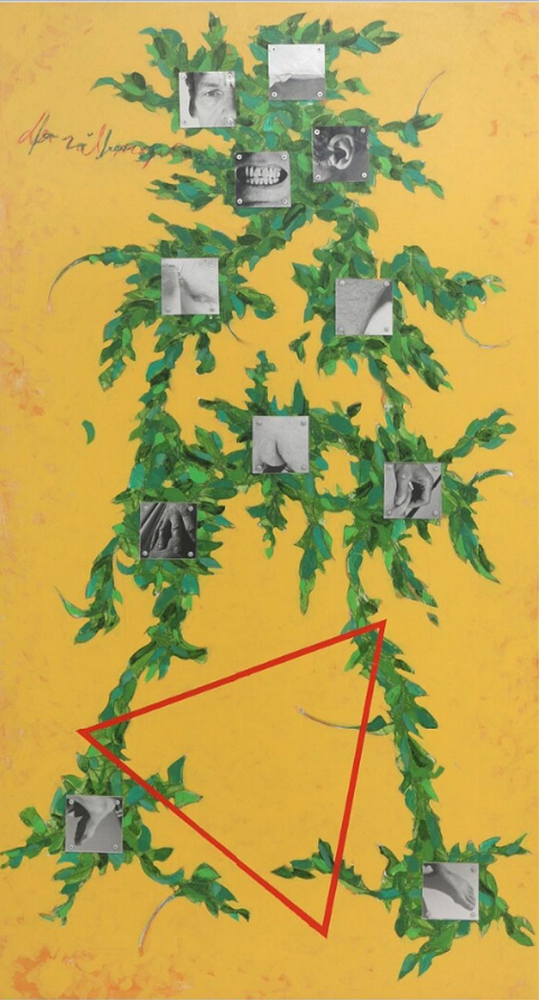 "Selvportræt" Olie maleri og plexiglas på plade.