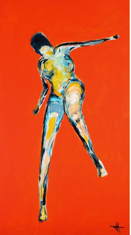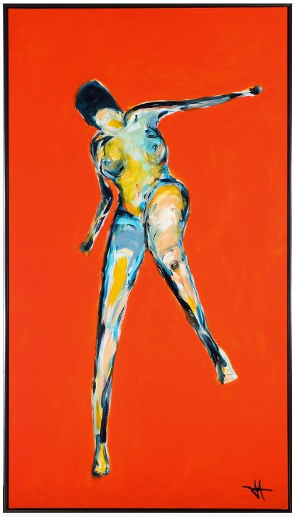 "Figurkomposition" Stort flot maleri, monteret i sort svæveramme fra Bogå design.
