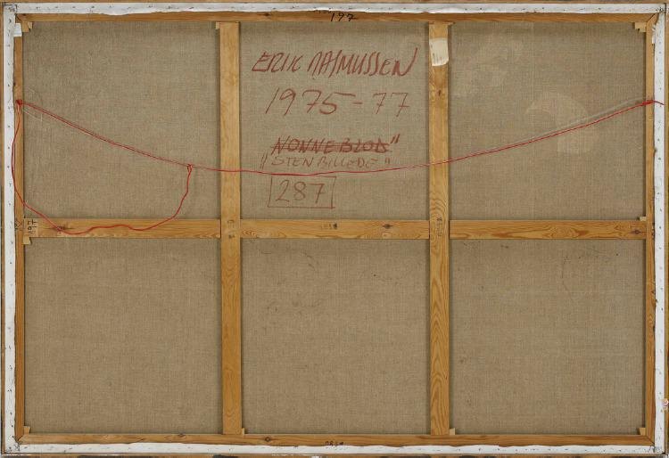 "Stenbillede" Stort spændende oliemaleri på lærred i natur ramme.