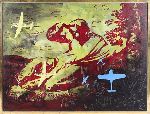 "Komposition" Akryl på lærred. I guld svæveramme.