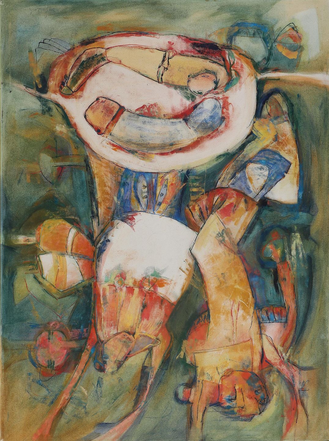 "Den glemte gud" Oliemaleri i fin smal guld ramme. Maleriet er købt hos Galleri Moderne i 1973.