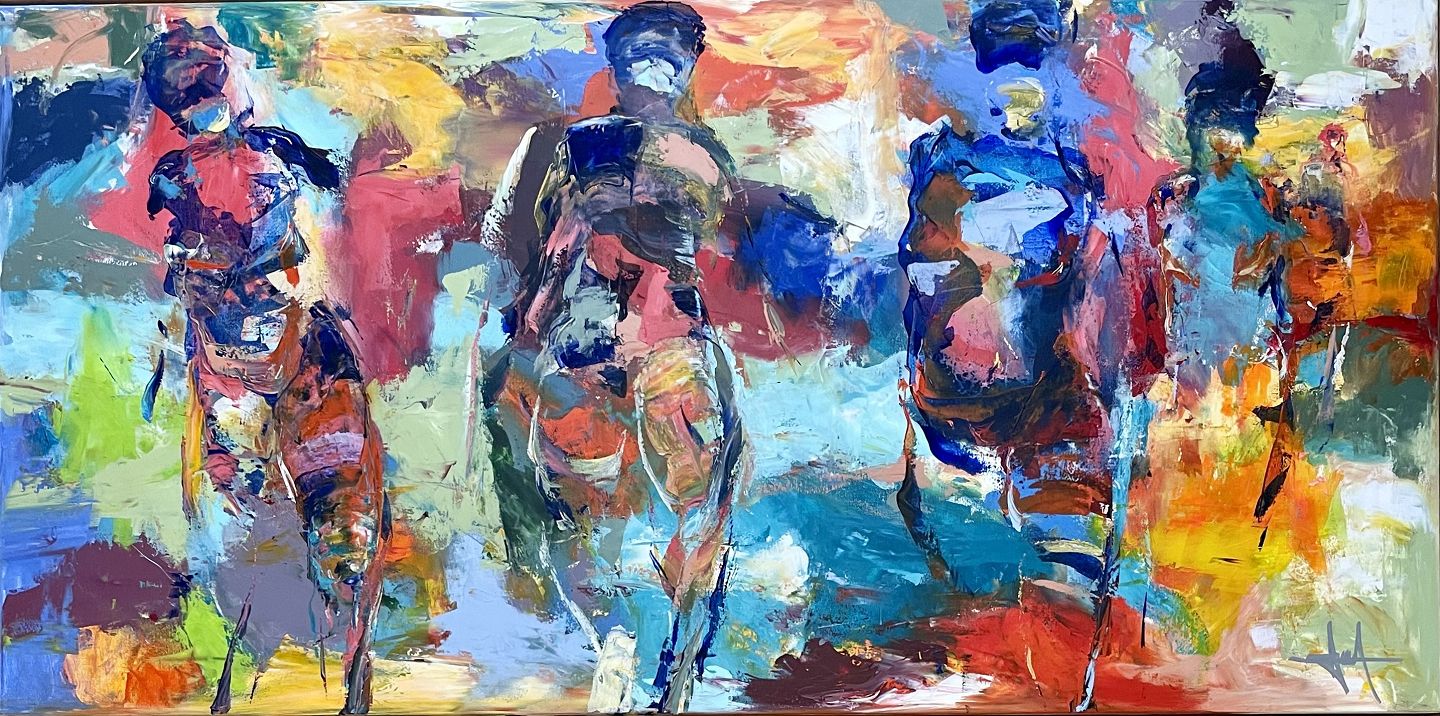 "Komposition" Akryl på lærred i massiv egetræs svæveramme fra bogø Design.