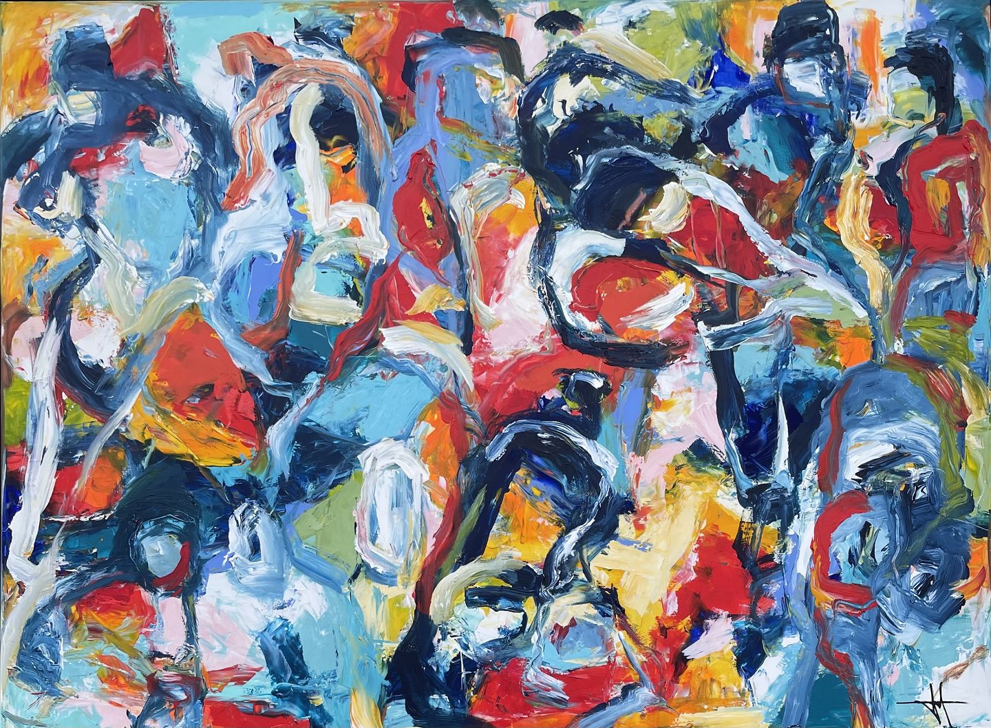 Stort flot maleri i akryl, monteret i sølv svæveramme fra Bogø Design.
