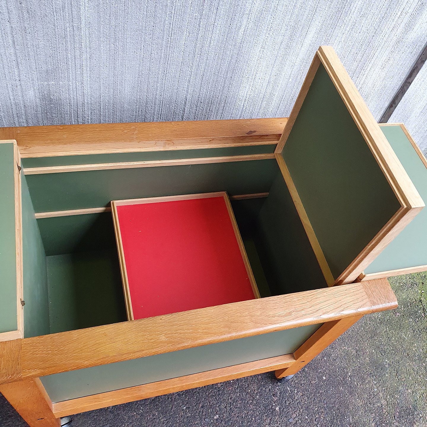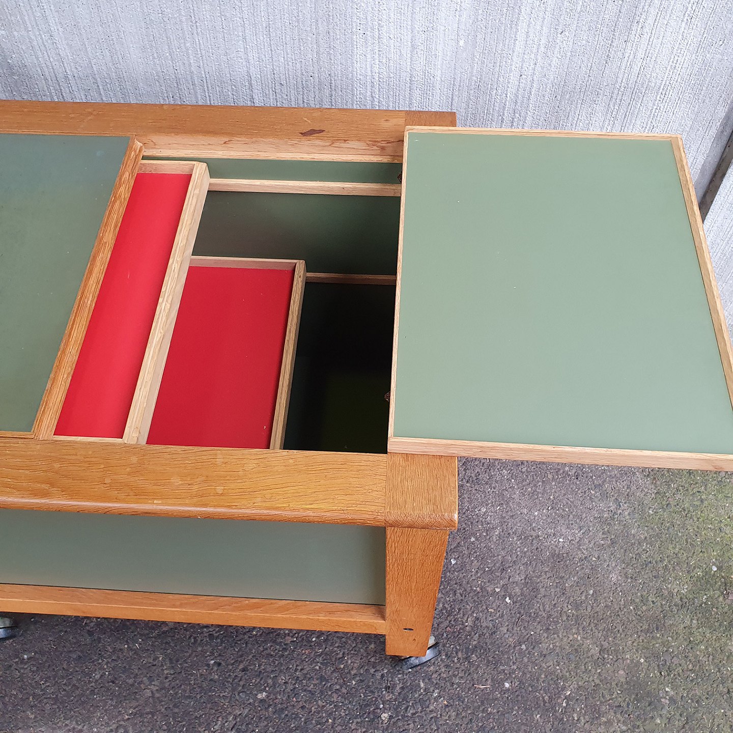 Bartable in oa and green laminate. Unknown designer/maker .Good condition and quality.