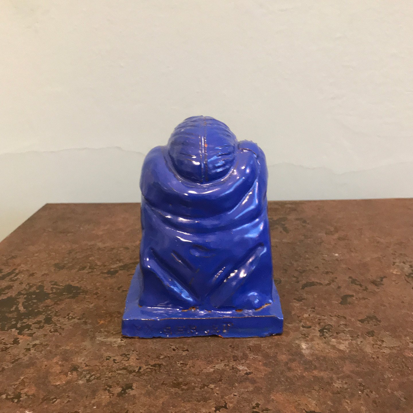 Skupltur i blåt glaseret keramik udført og signeret af den svenske kunstner Stefan Morlind.