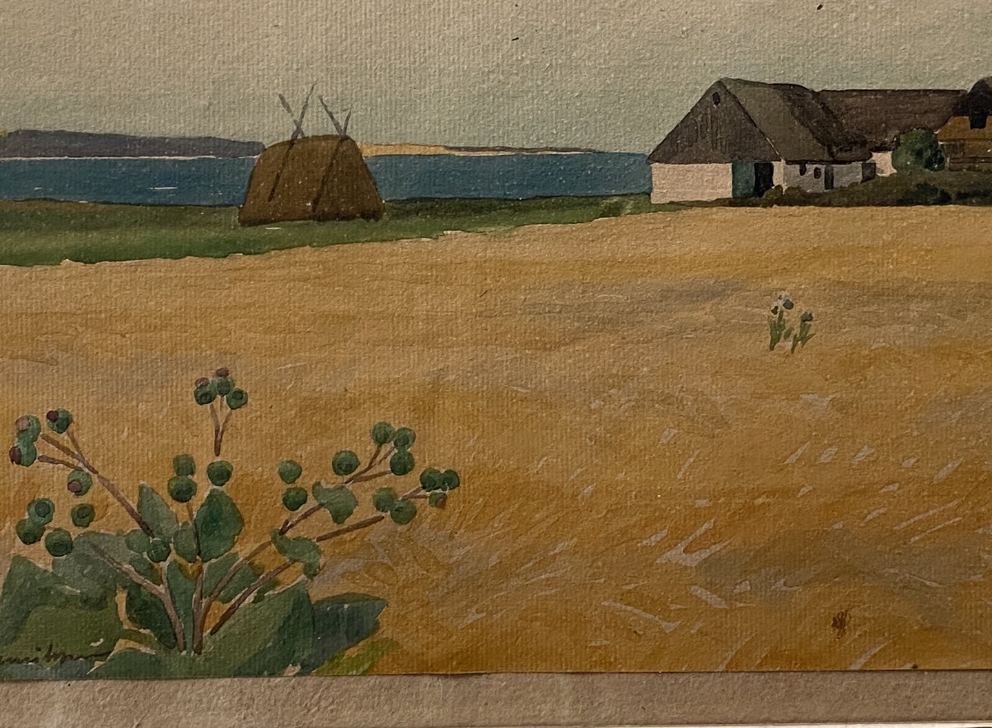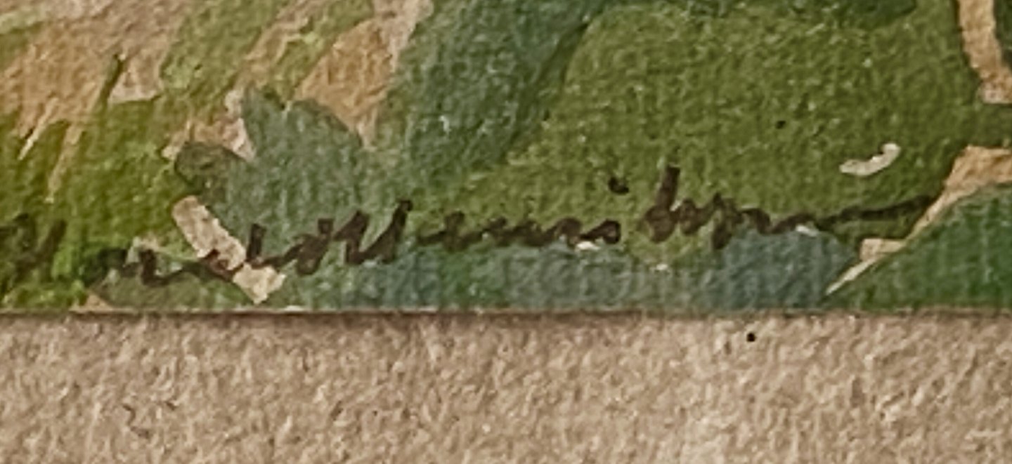 Harald Henriksen akvarel med landskabsmotiv i original gammel sølvramme.