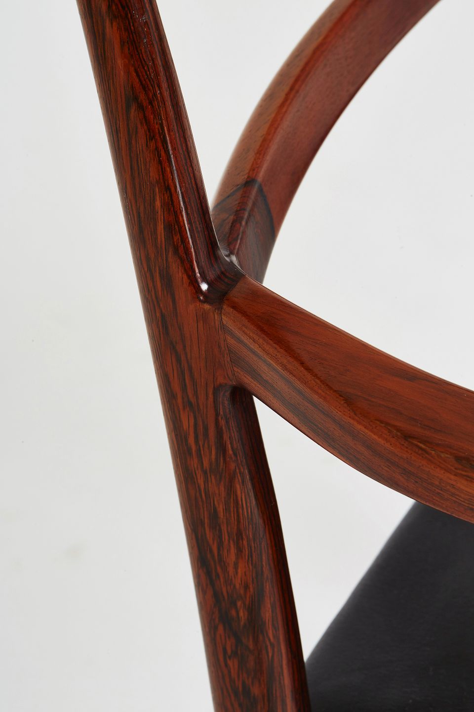 H. 81 cm. D. 48.5 cm. W. 56.5 cm. Seat height 45 cm. Armrest height 65 cm.