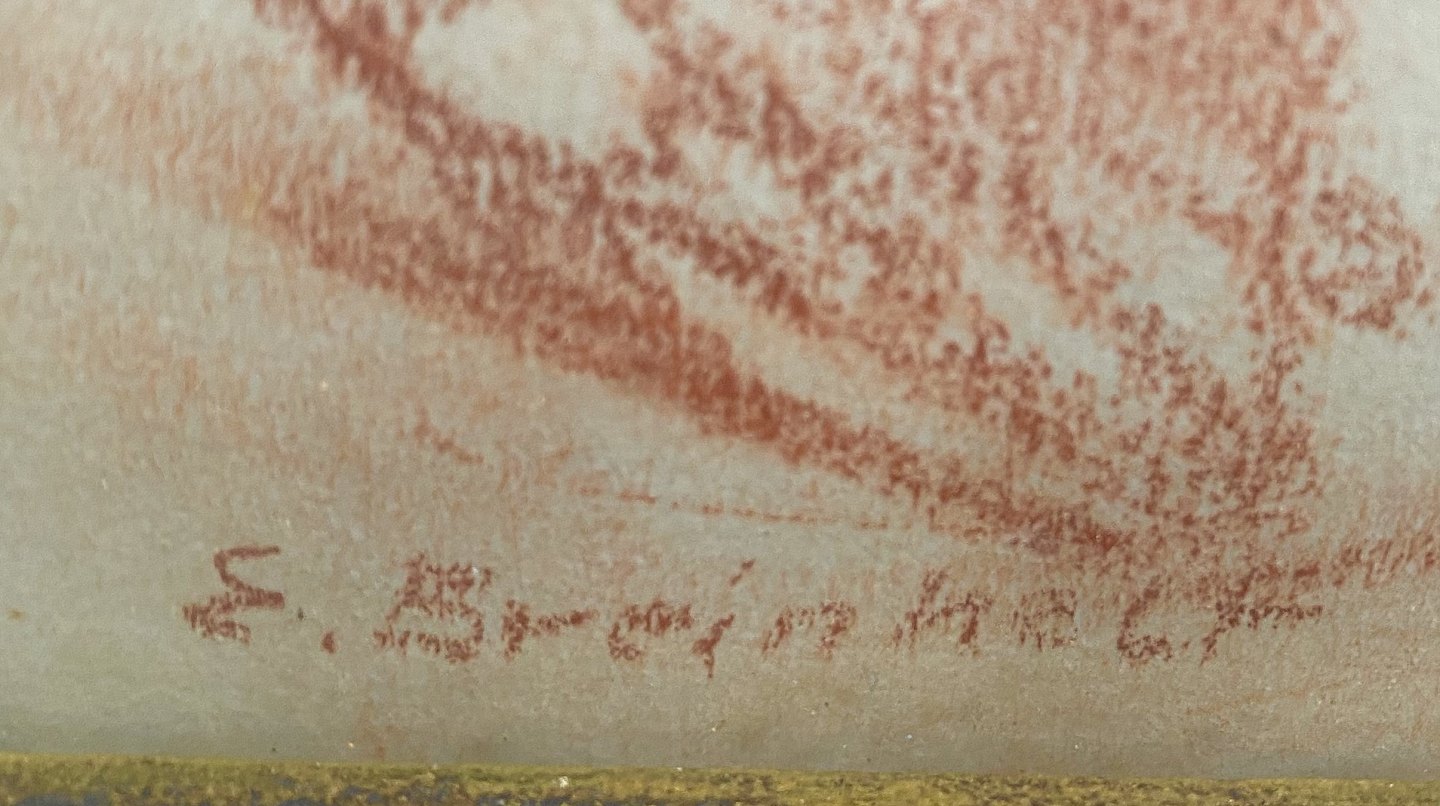 Ejnar Breinholt (1890 - 1973). Oil chalk drawing behind glass in black patinated wooden frame. Motif of a seated woman. Signed E. Breinholt. Dimensions: 29 x 23.5 cm