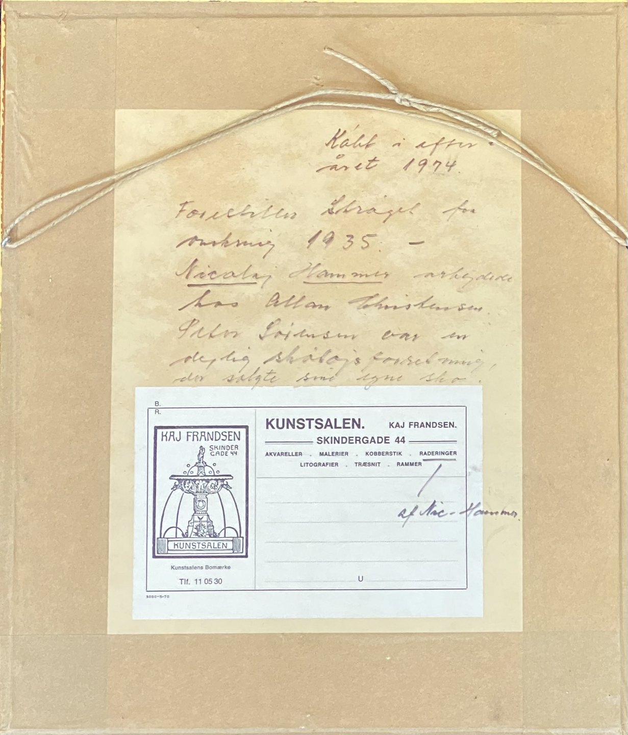Varenummer: 548586Nicolaj Hammer. Radering med motiv fra Foreningslivet på strøget ca 1935.