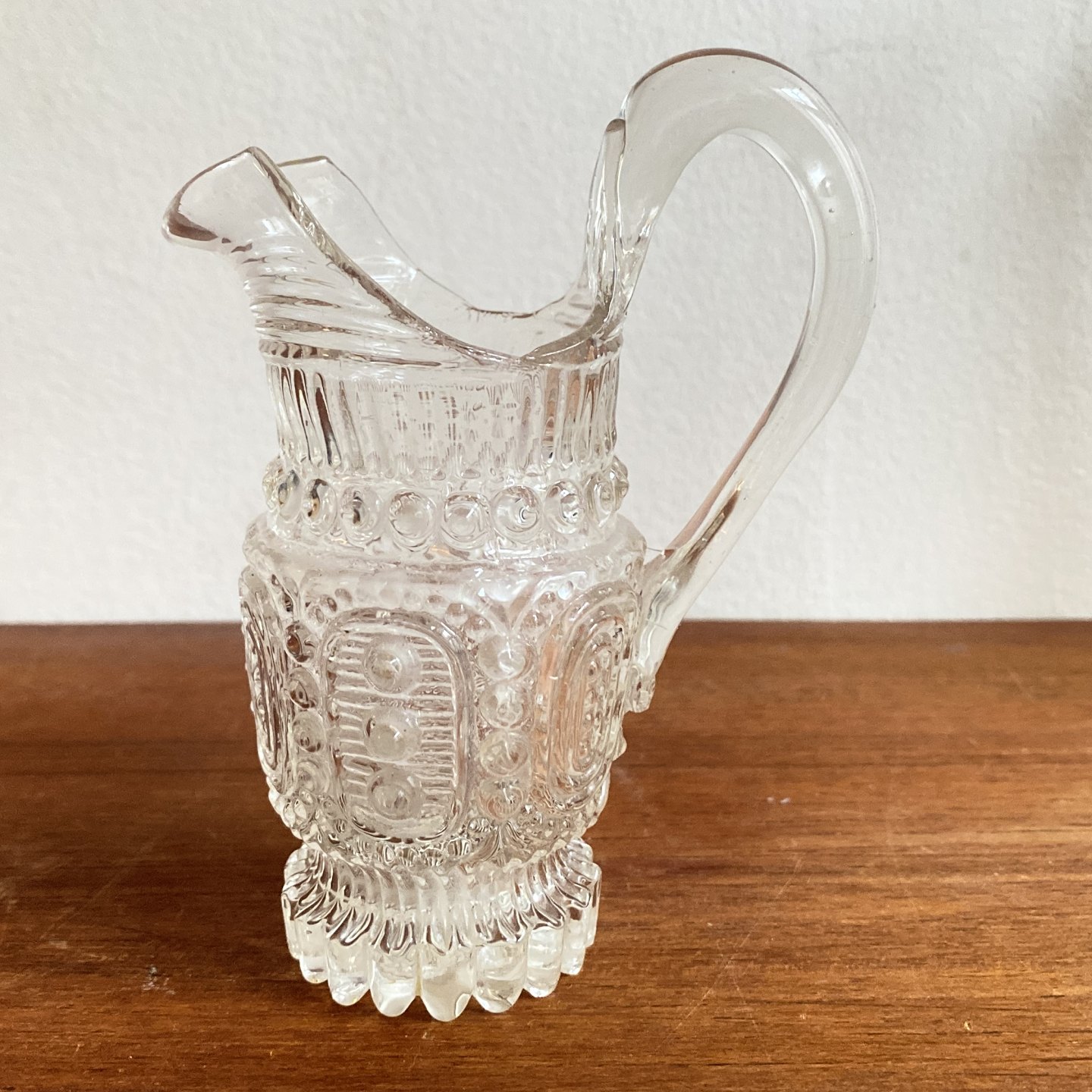 Flødekande af klart glas blæst i form.