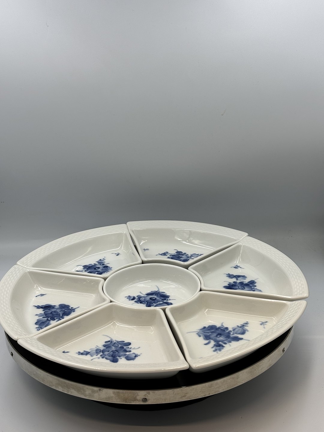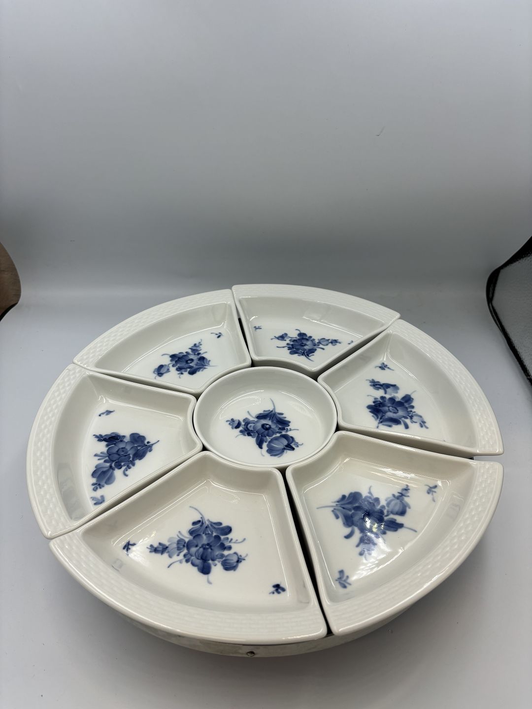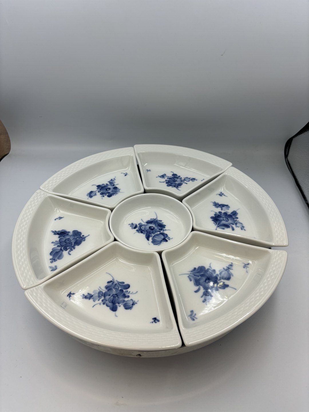 Royal Copenhagen Blå Blomst Flettet Cabaret fad MEGET Sjælden Modelnummer 8279 og 8216 1 Sortering Med dreje fod Super flot stand