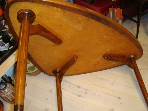 Sofabord af palisander, plade med kehlet kant, nederste af ben anden træsort. Pæn og velholdt. H. 58, B. 81, L. 119,