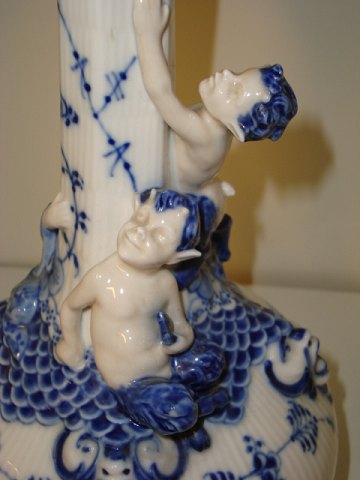 Royal Copenhagen helblonde musselmalet kandelaber, modelnr. 1006. 1 sort i hel og fin stand. Formgivet ca. 1886 af Arnold Krog, kunstnerisk leder på den Kgl. Porcelænsfabrik. H. 56 cm.