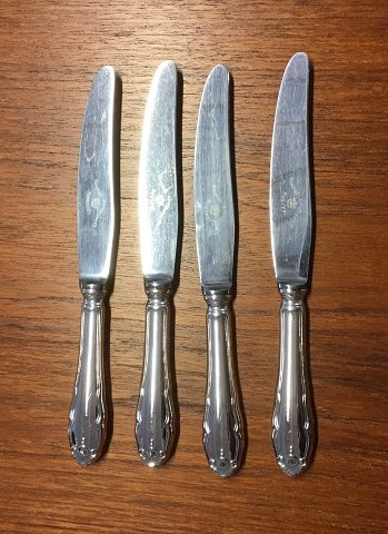 Charlottenborg Sølvbestik, stemplet (Grann&Laglye) 4 Knive 20,5 cm 1 Middagsske 20,5 cm 1 Middagsgaffel 20,5 cm 6 Kagegafler m. gravering 13,5 cm
