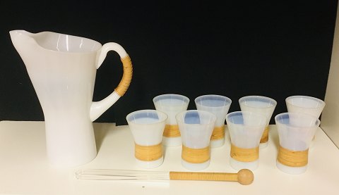 Jacob E Bang opalinekande model 7277 med bambusbevikling på håndtag og med 8 stk. tilhørende glas og et stk. pisker.