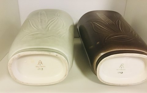 Aluminia Kunstfajance, 2 stk. vaser i Solbjergserien, 22 cm høje, nr. 1712, designet af Nils Thorson 1935